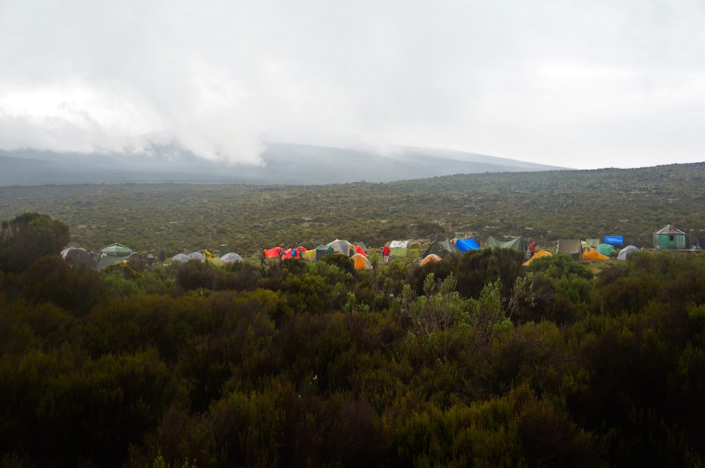 Again I slept really well although I had gone to bed around 7:30pm the night before. My tent door opened to a nice view of Kili before clouds hid it again. First time we could really see the big guy. An easy walk over the Shira Plain took us approx. 4 hrs. The walk was quite scenic with a bit of sun and rain in the end.